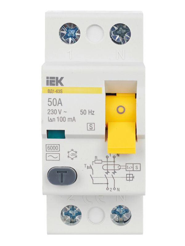 Выключатель дифференциальный тока (УЗО) ВД1-63S 2Р 50А 100м(Электромеханическое), код MDV12-2-050-100, производитель IEK