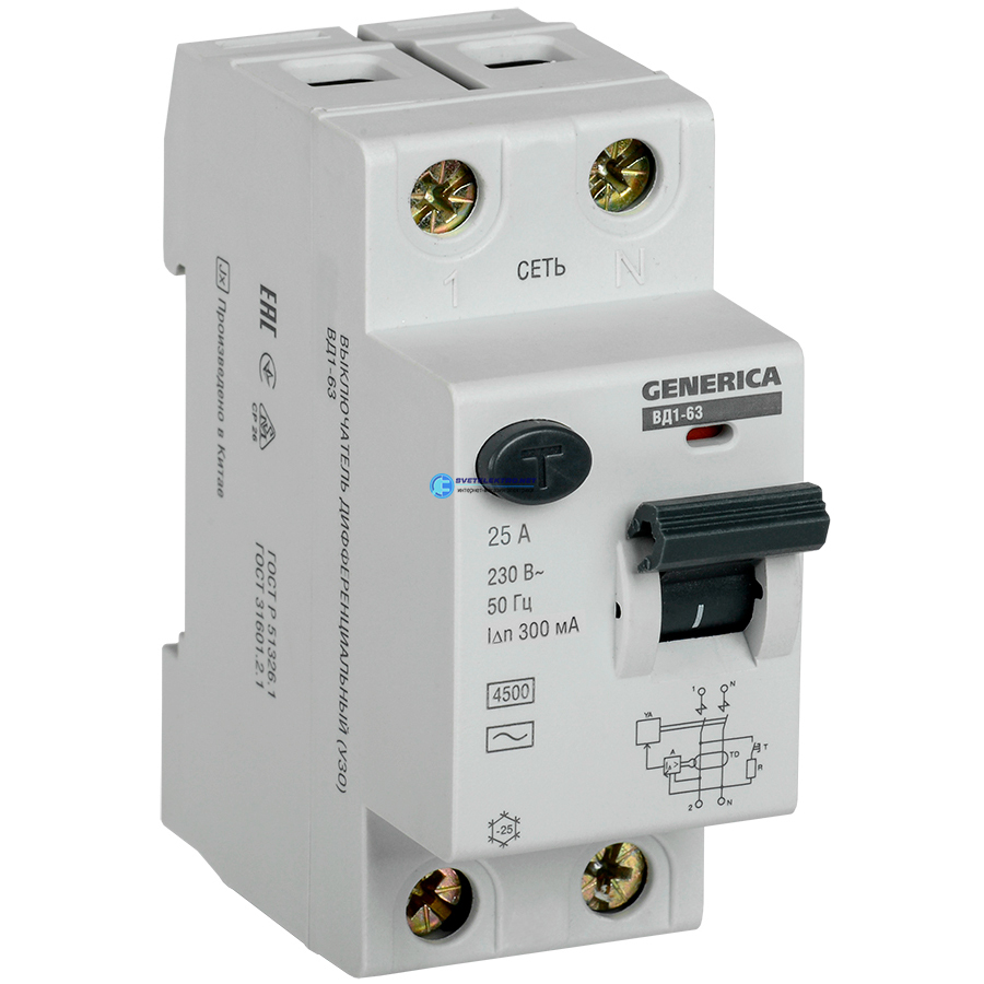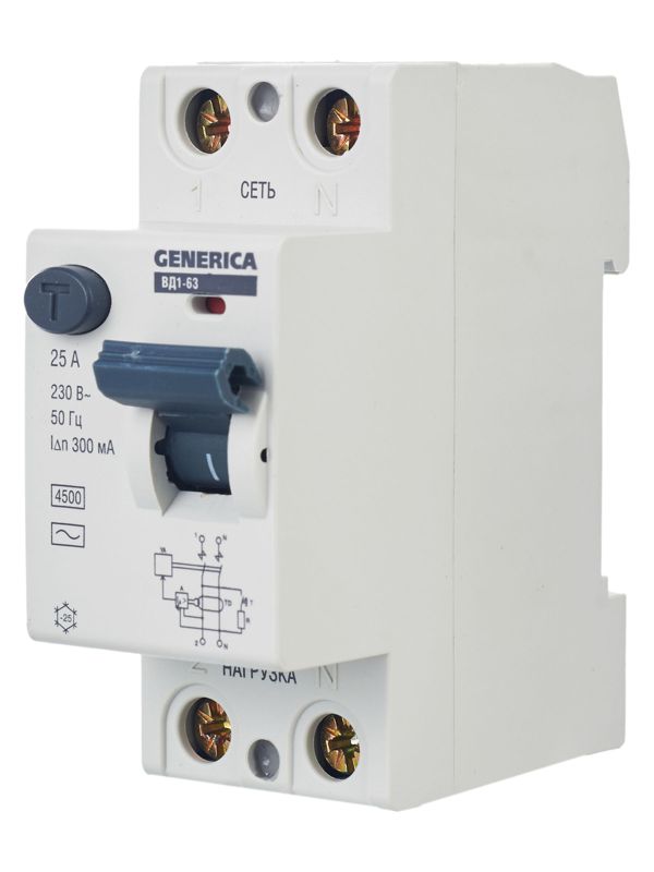 УЗО ВД1-63 2Р 25А 300мА, код MDV15-2-025-300, производитель Generica