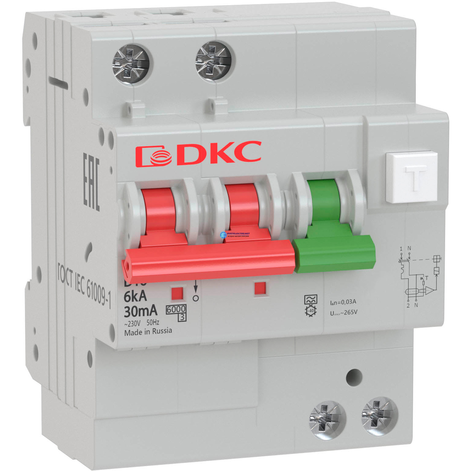 Выключатель автоматический дифференциального тока двухполюсный MDV63, 50А, 300мА, тип A, C, 6кА, электромеханический, серии YON PRO, код MDV63-24C50-A, производитель DKC
