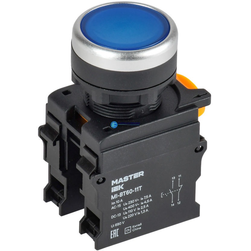 Кнопка с фиксацией d=22мм 1NO+1NC синяя MASTER, код MI-BT60-11T-3-21-K07, производитель IEK