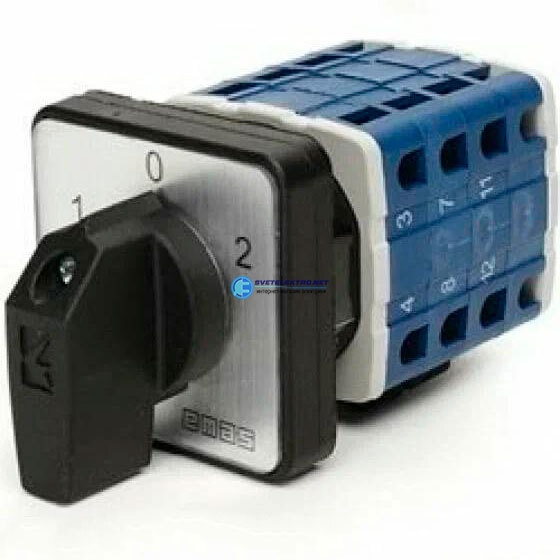 Переключатель полюсов 10А (1-0-2) 60?, полюса, рамка 48х48мм, 400В AC, IP54, код PSA010KD334S, производитель EMAS