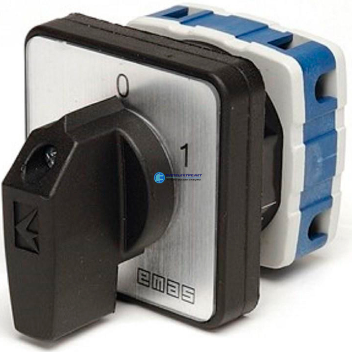 Переключатель двухпозиционный 6А (0-) 60 градусов, полюс, рамка 48х48 мм, 400В AC, IP54, код PSA016AK131S, производитель EMAS