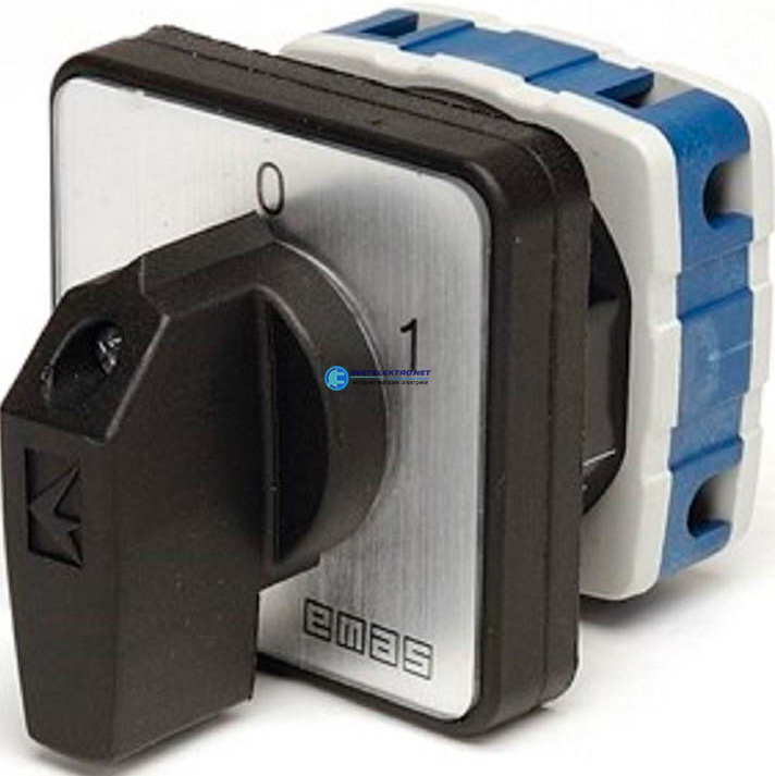 Переключатель двухпозиционный 25А (0-) 60 градусов, полюс, рамка 48х48 мм, 400В AC, IP54, код PSA025AK131S, производитель EMAS