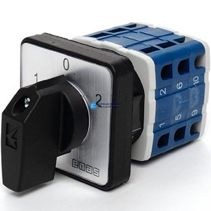 Переключатель управления электродвигателем (1-0-2) 25А, фазы, рамка 48х48 мм, 400В AC, IP54, код PSA025MS334S, производитель EMAS