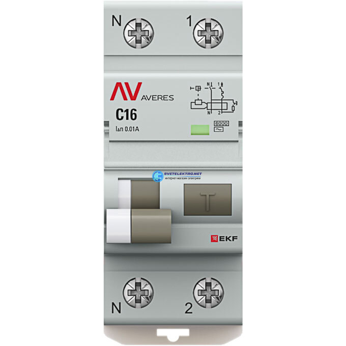 Автоматический выключатель дифференциального тока DVA-6 1P+N 16А 10мА (A) 6кА AVERES, код rcbo6-1pn-16C-10-ac-av, производитель EKF