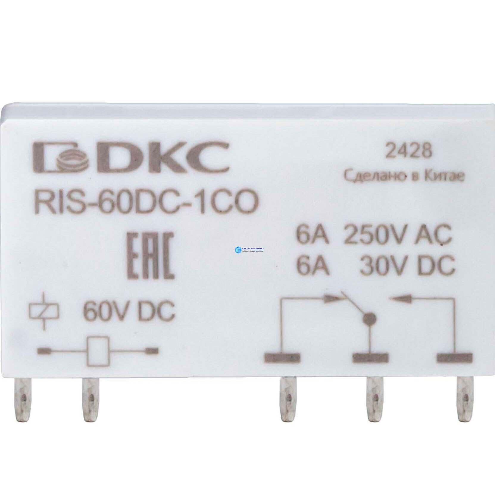 Реле миниатюрное ультратонкое, 1CO, ком. ток 6А, AgSnO, напряжение 60V, код RIS-60DC-1CO, производитель DKC
