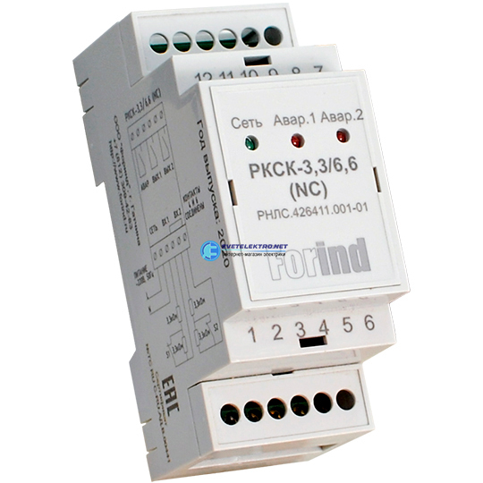 Реле контроля сухого контакта РКСК-3,3/6,6, код РКСК-3,3-6,6 (NC) РНЛС.426411.001-01, производитель Форинд