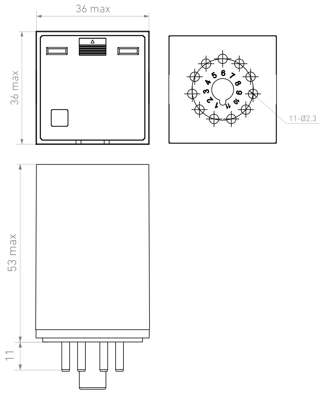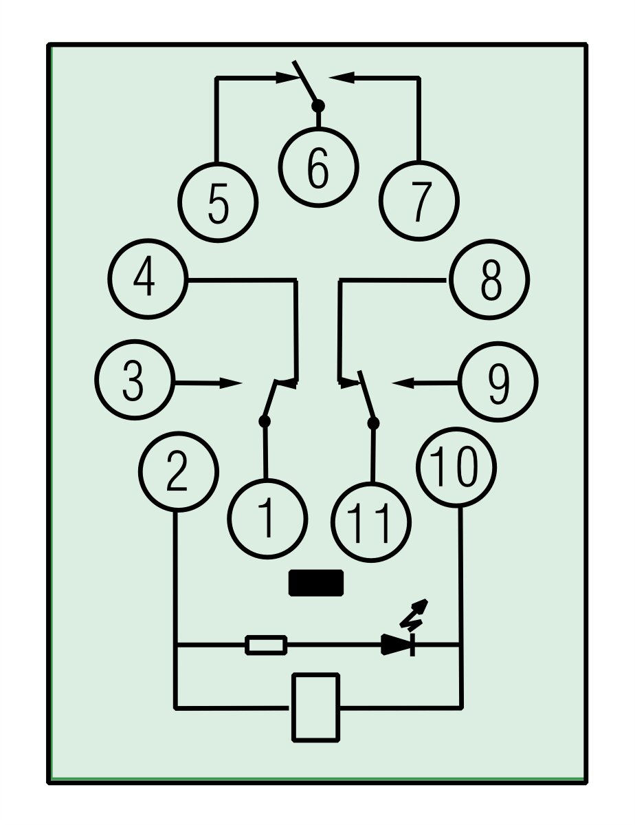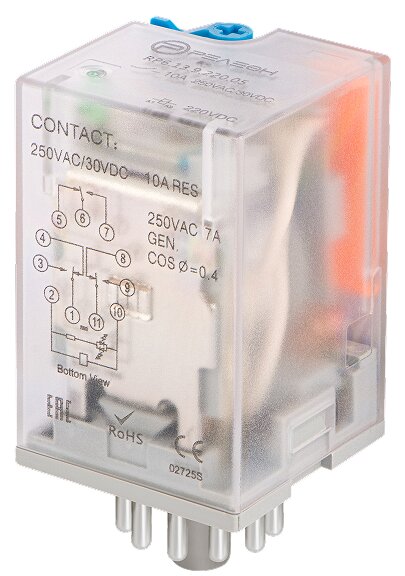 Универсальное реле, перекидных контакта 10А (220В DC) 11 штырьковый разъем, код RP613922005, производитель Релеон
