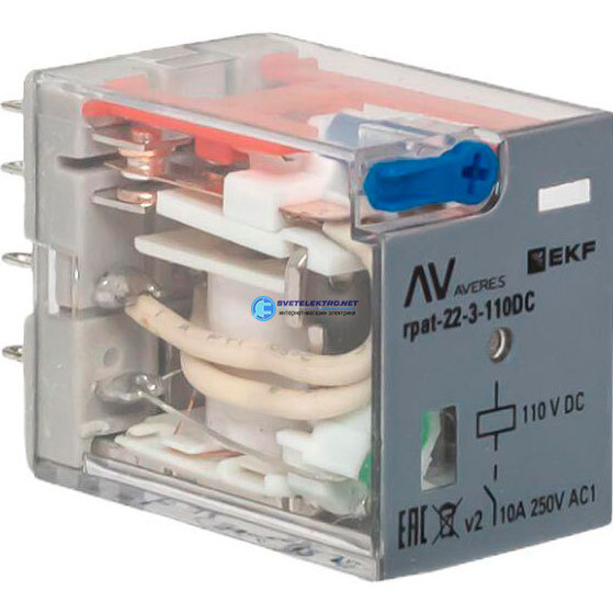 Реле промежуточное с кнопкой и мех. Индикацией 22/3 10A 110В, код rpat-22-3-110DC, производитель EKF