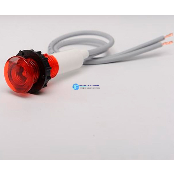 Сигнальная арматура 10мм, красный цвет, лампа накаливания, кабель 12см, 230В AC, код S100NK, производитель EMAS