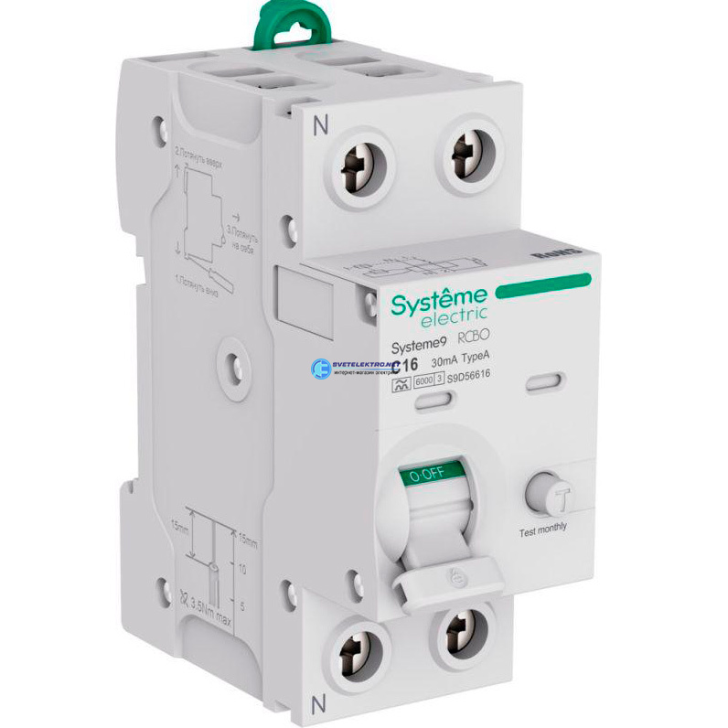 Авт. выкл. диф. тока (АВДТ) 1P+N 16A 6kA 30мА Тип-A 230В Systeme9, код S9D56616, производитель Systeme Electric