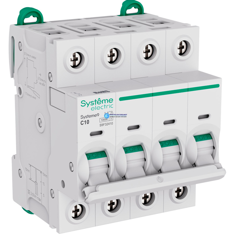 Выключатель автоматический (АВ) 10A 4P 10kA 400В Systeme9, код S9F32410, производитель Systeme Electric