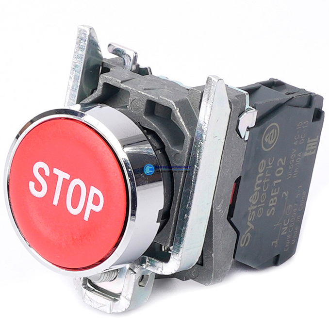 Кнопка в сборе модульная 22мм красная металл 1НЗ с маркировкой STOP, код SB4BA4342, производитель Systeme Electric