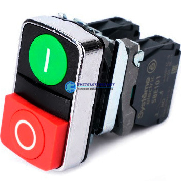 Кнопка двойная в сборе модульная 22мм зелен I+красн O металл 1НО+1НЗ, код SB4BA73415, производитель Systeme Electric
