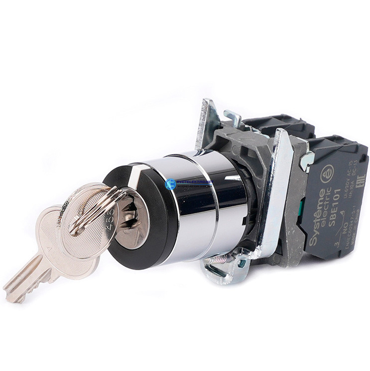Переключатель в сборе модульный 22мм позиции с фиксацией ключ 2НО, код SB4BG03, производитель Systeme Electric