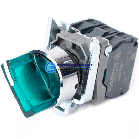 Переключатель с подсвет в сборе 22мм 3поз зел с фикс металл 230ВАС 1НО+1НЗ, код SB4BK133M5, производитель Systeme Electric