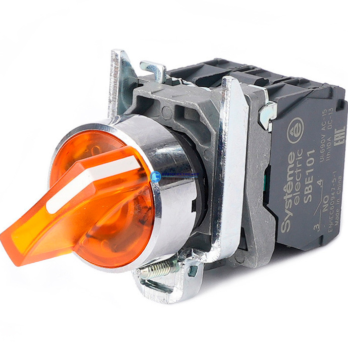 Пер-ль с подсвет в сборе 22мм 3поз желт с фикс металл 24В DC 1НО+1НЗ, код SB4BK135B5, производитель Systeme Electric