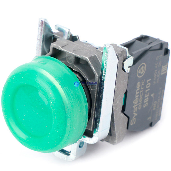 Кнопка в сборе модульная 22мм выступающая зеленая с возвратом металл 1НО, код SB4BP31, производитель Systeme Electric