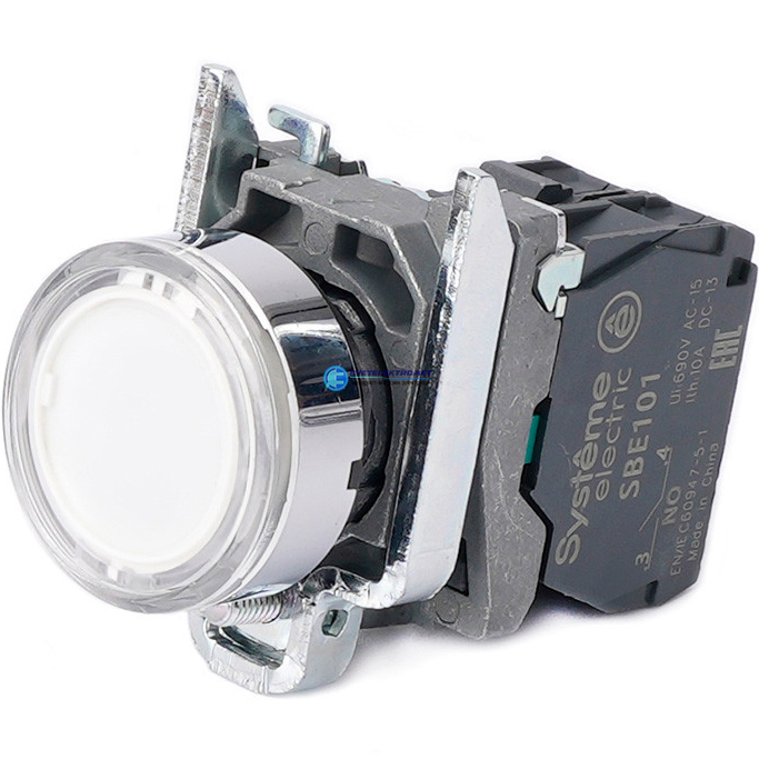 Кнопка с подсветкой в сборе модульная 22мм белая металл 24ВDC 1НО, код SB4BW31B1, производитель Systeme Electric