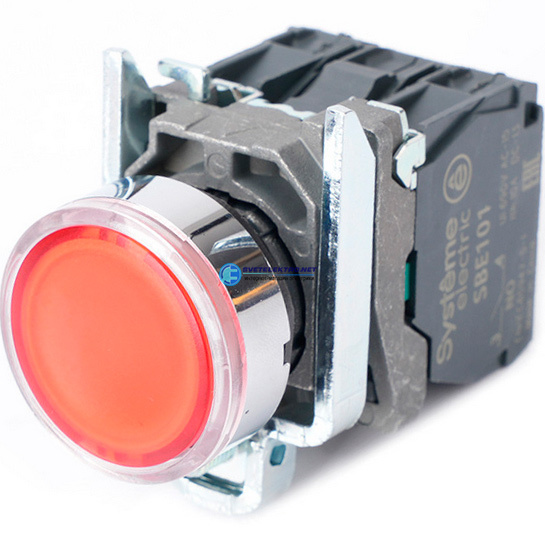 Кнопка с подсвет в сборе модуль 22мм красная металл 230-240ВAC 1НО+1НЗ, код SB4BW34M5, производитель Systeme Electric
