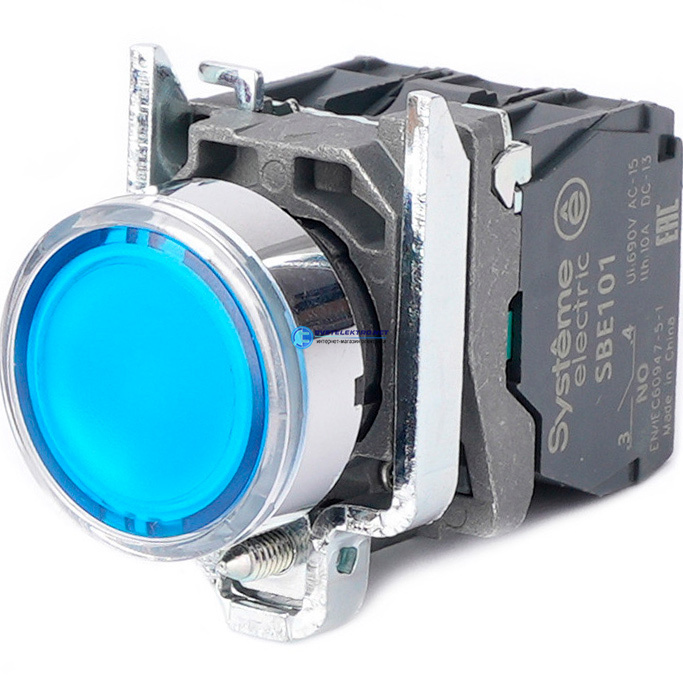 Кнопка с подсветкой в сборе модульная 22мм синяя металл 24ВDC 1НО+1НЗ, код SB4BW36B5, производитель Systeme Electric