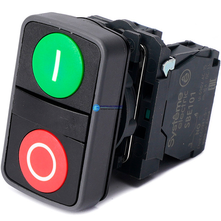 Кнопка двойн в сборе модуль 22мм зел I+красн O пластик 1НО+1НЗ, код SB5AA73415, производитель Systeme Electric