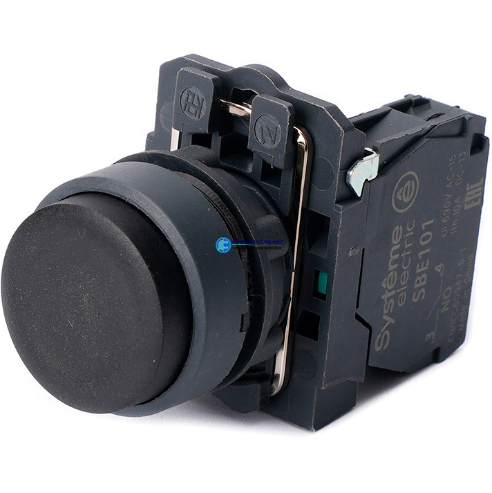 Кнопка в сборе модульная 22мм выступающая черная с возвратом пластик 1НО, код SB5AL21, производитель Systeme Electric