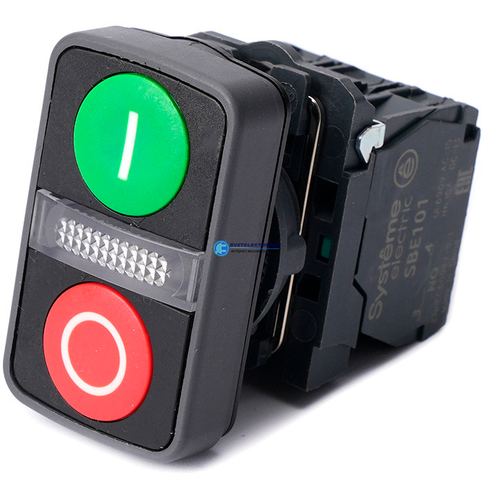 Кнопка двойн в сборе модуль 22мм з I+сигн лампа+кр О пластик 230ВАС 1НО+1НЗ, код SB5AW7A3741M5, производитель Systeme Electric
