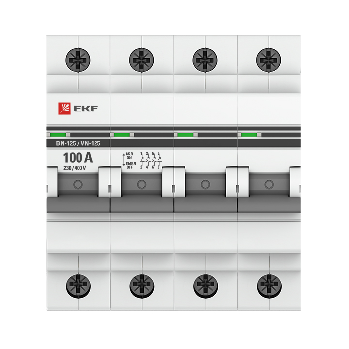 | Комплектация: | выкл. нагрузки 4P 100А ВН-125 EKF, |