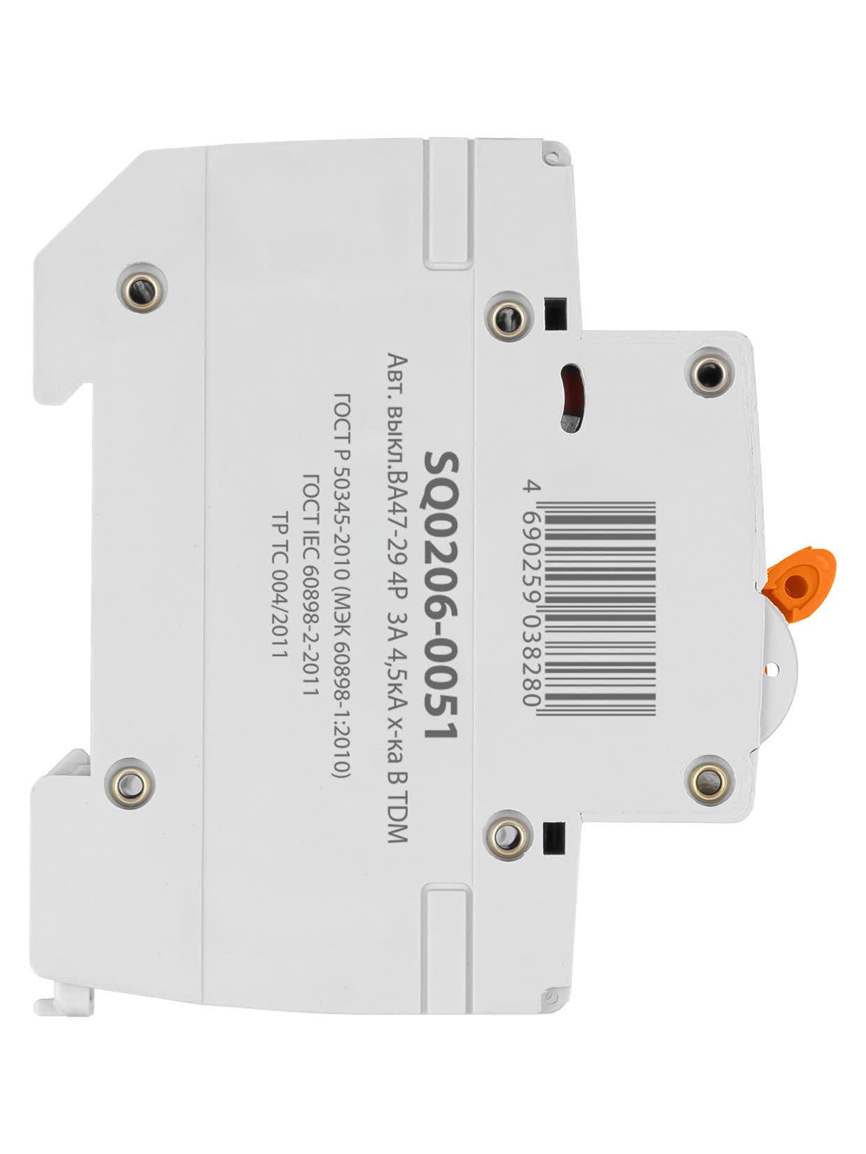 Выключатель автоматический ВА47-29 4п 3А 4,5кА В, код SQ0206-0051, производитель TDM