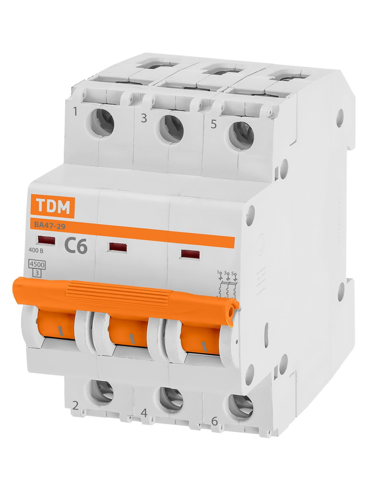 Выключатель автоматический ВА47-29 3п 6А 4,5кА С, код SQ0206-0105, производитель TDM