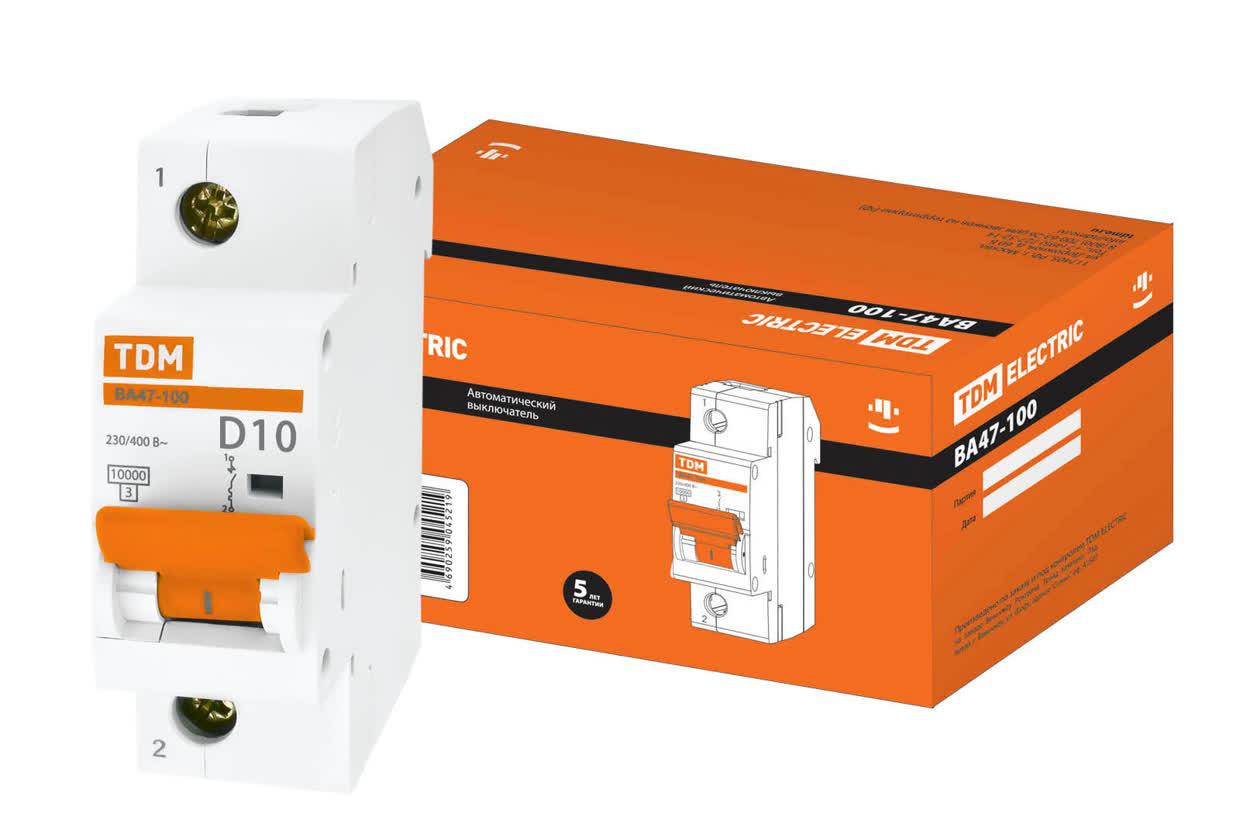 Выключатель автоматический ВА47-100 1п 10А 10кА D SQ0207-0001 TDM