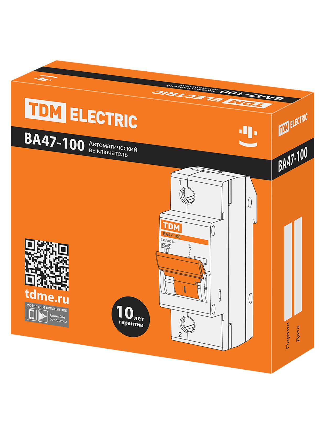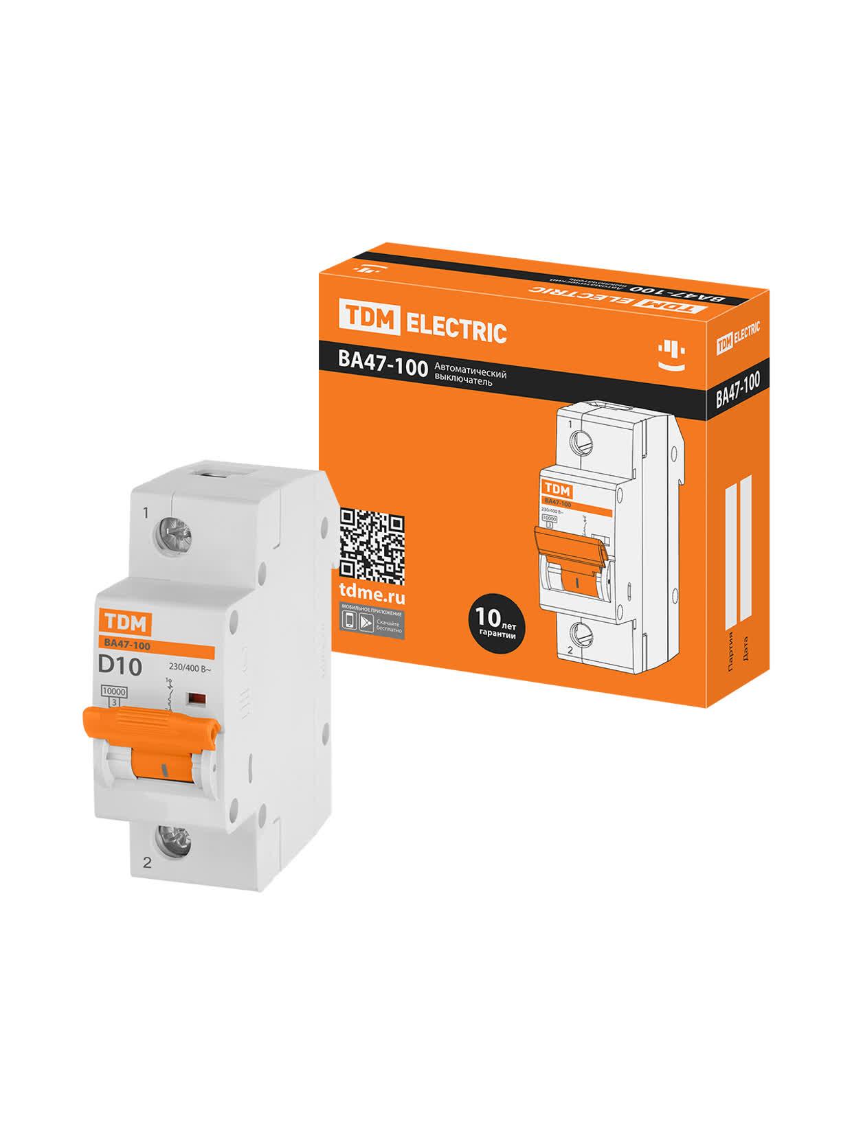 Выключатель автоматический ВА47-100 1п 10А 10кА, код SQ0207-0001, производитель TDM