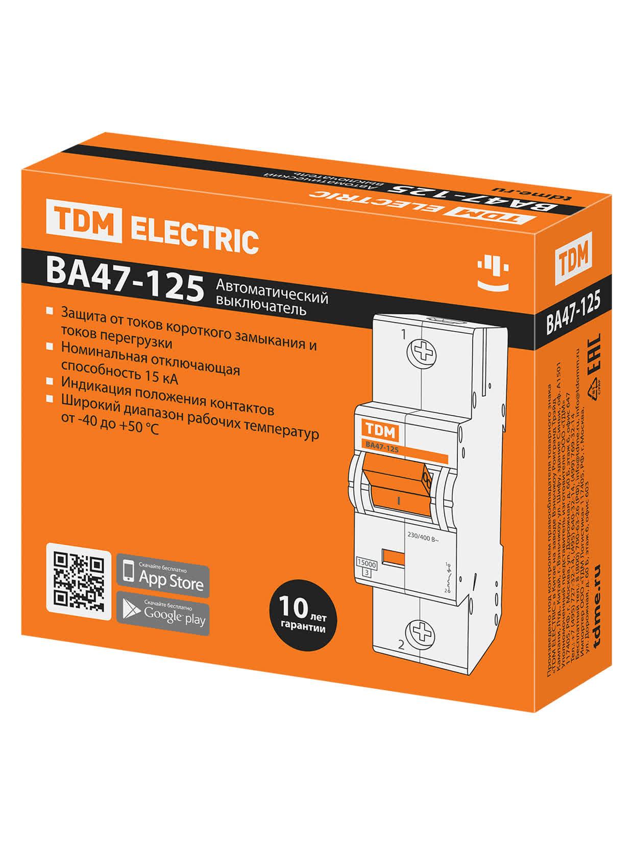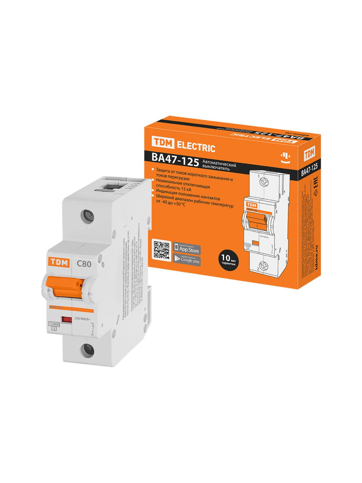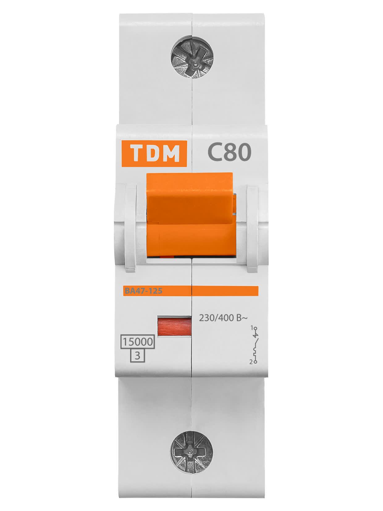 Выключатель автоматический ВА47-125 1п 80А 15кА С, код SQ0208-0058, производитель TDM