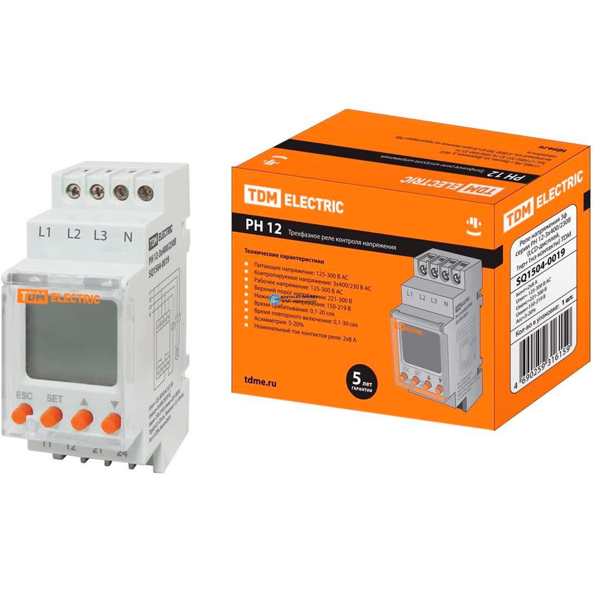 Реле напряжения 3ф серии РН 12-3х400/230В (LCD-дисплей, 1нр+1нз-контакты), код SQ1504-0019, производитель TDM