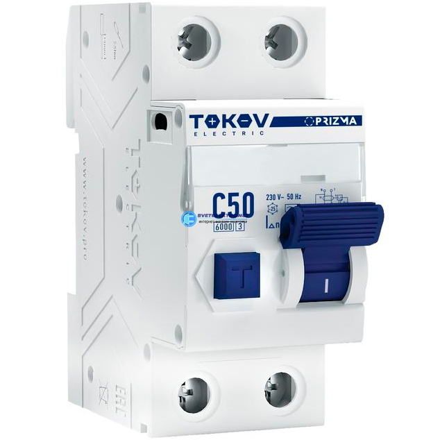 Выключатель автоматический дифференциального тока 2п (1P+N) 50А 30мА тип A 6кА PRIZMA, код TKE-PZ60-RCBO-2-50-30-AC, производитель TOKOV ELECTRIC