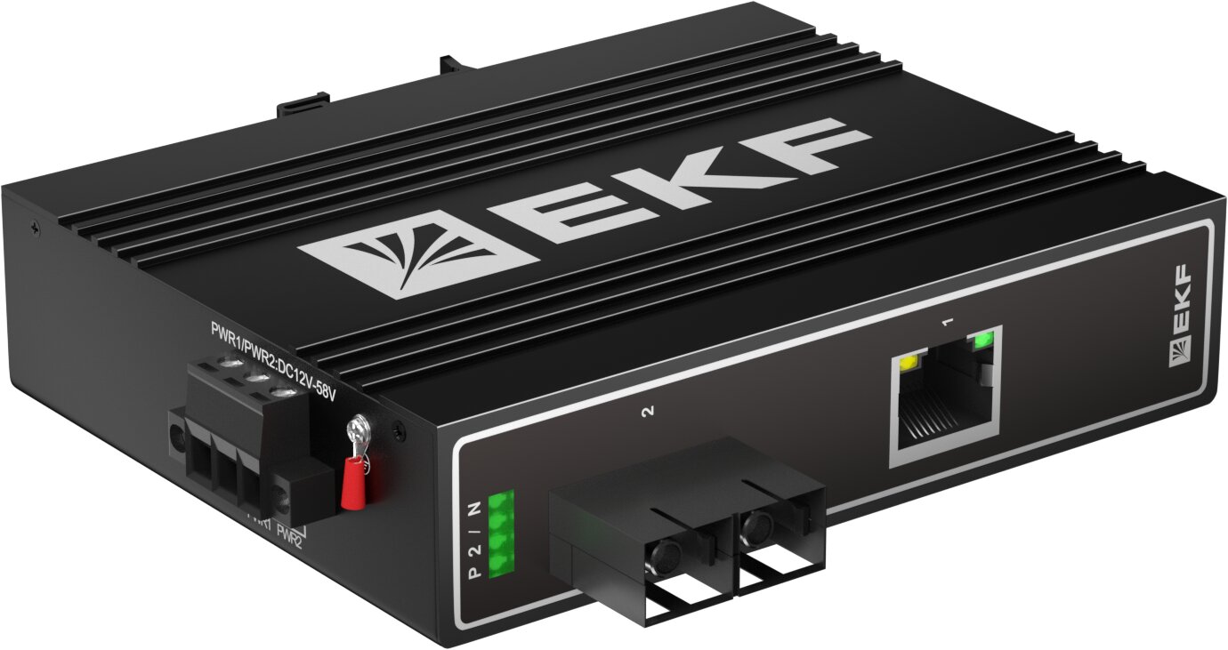 Медиаконвертер 10/100Base-TX в 100Base-X, разъем SC, двойное одномодовое оптоволокно, 1550нм, код TSX-MC1-1GX1GT-SC, производитель EKF