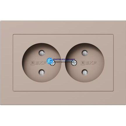 Механизм розетки двойной 16А без заземления со шторками с рамкой кремовый Эпика EKF UP1-SOI-201 EKF