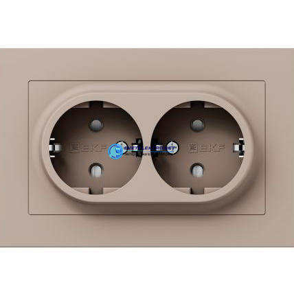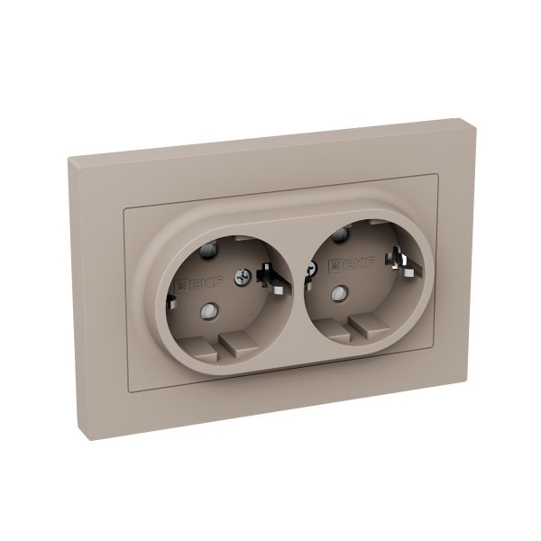 Механизм розетки двойной 16А с заземлением со шторками с рамкой кремовый Эпика EKF UP1-SOI-211 EKF