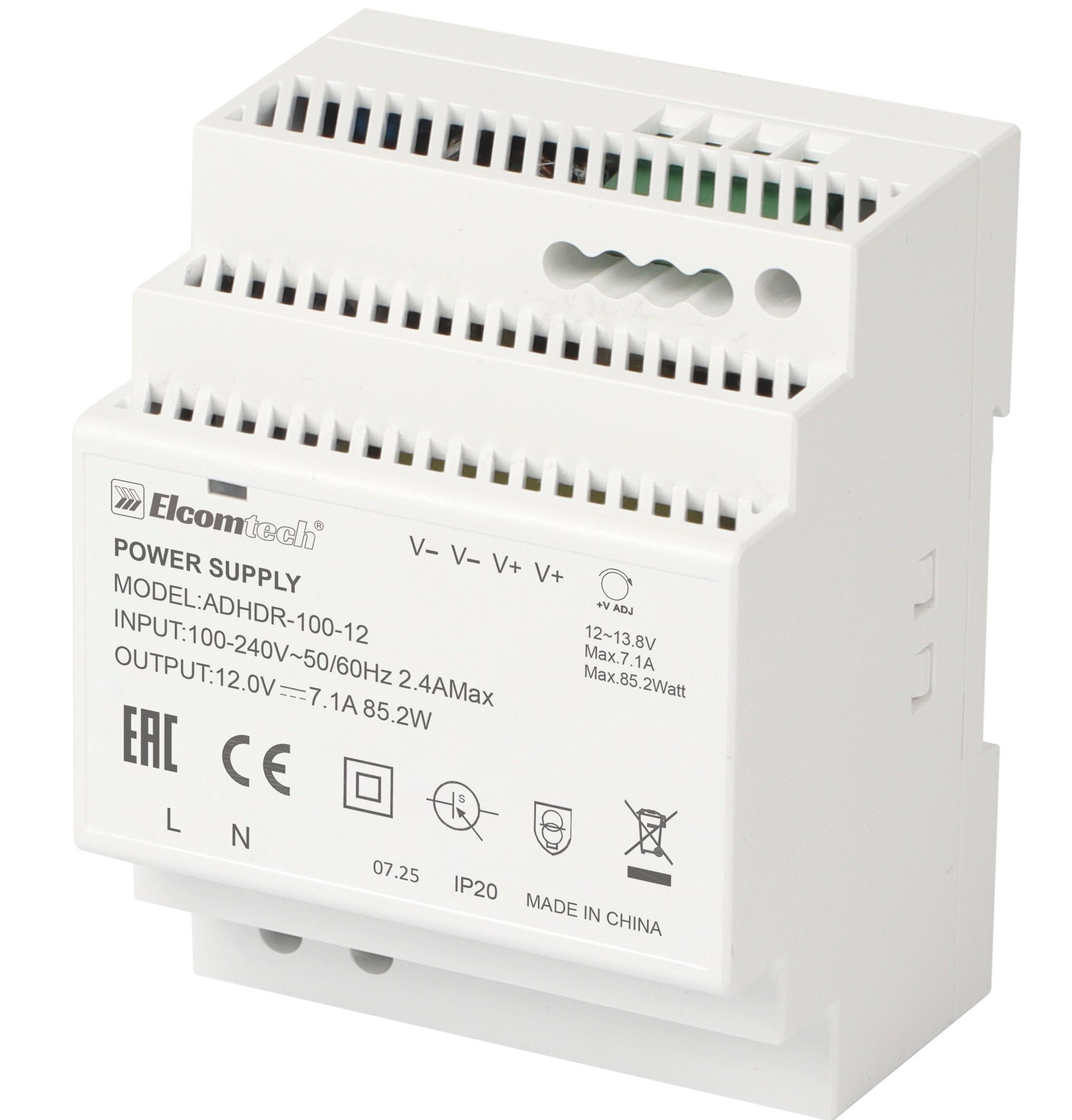 Блок питания на DIN рейку AC/DC 85W вход 100-240V,выход 12V 7,1A ADHDR-100-12, код УТ-00038955, производитель Elcomtech