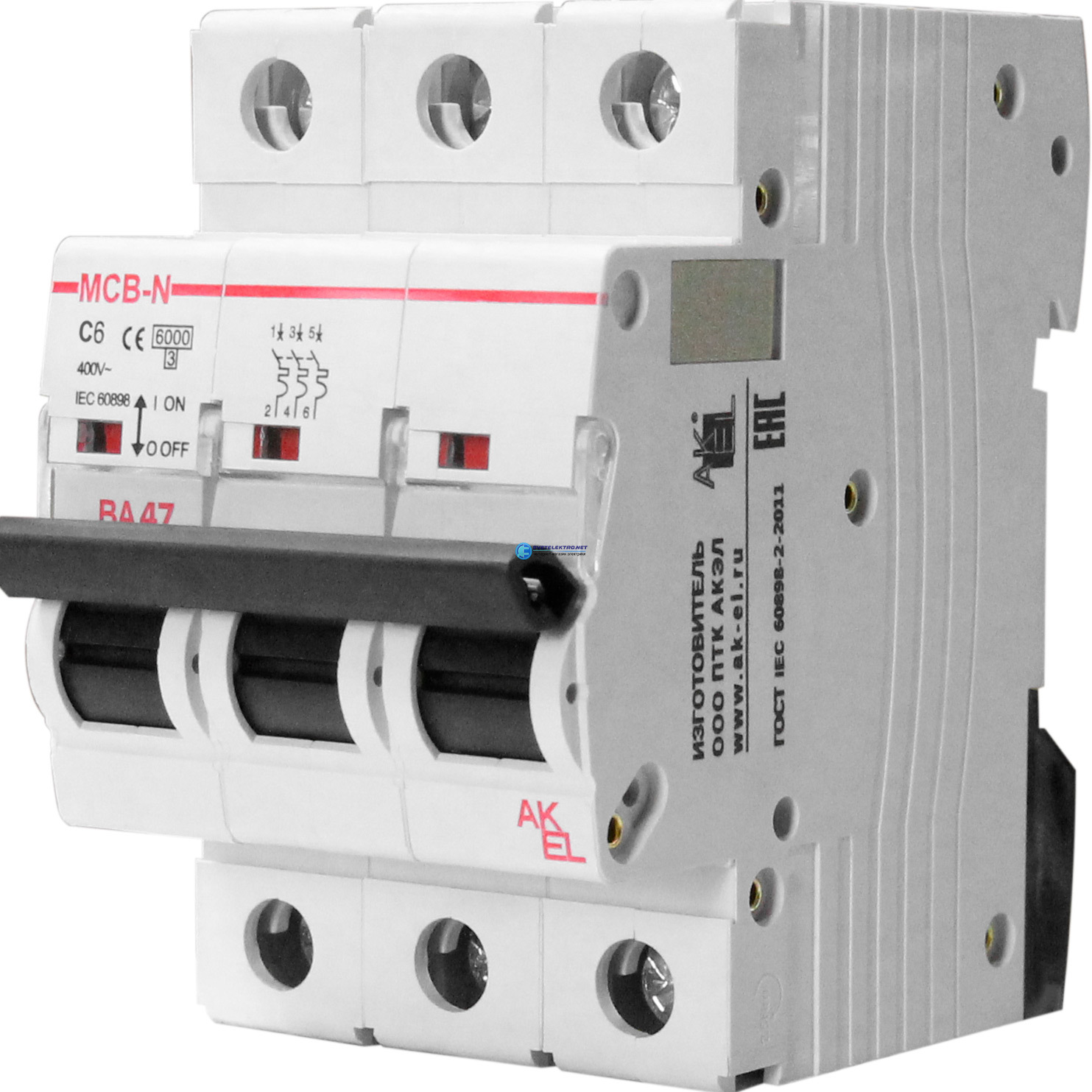 Выключатель автоматический ВА47-MCB-N-3P-C10-AC 3P 10A C 6кА, код УТ000356731, производитель АКЭЛ