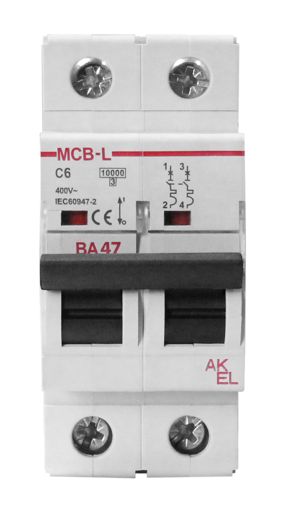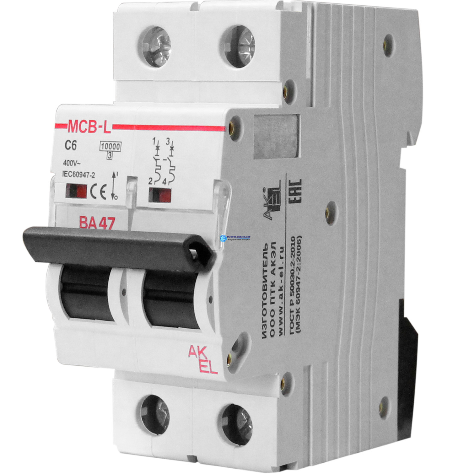 Выключатель автоматический ВА47-MCB-L-2P-C6-AC 2P 6A C 10кА 230VAC 10кА 400VAC, код УТ000365150, производитель АКЭЛ