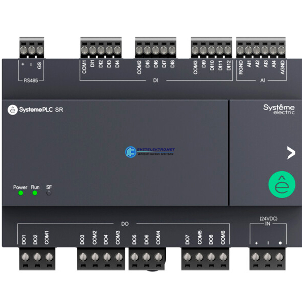 Реле интеллектуальное SR1, 24 VDC, без дисплея, без возможности расширения, 24 IO: 12 дискретных входов, 8 дискретных выходов (реле, 3 A), 4 аналоговы ZR1PP00BD4A Systeme Electric