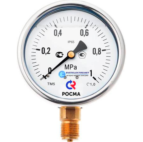 Манометр виброустойчивый радиальный ТМ-520Р.00 0...2.5 МРа М20х1.5 150С кл.т.1.0, готовый к гидрозаполнению, код 00000001003, производитель РОСМА