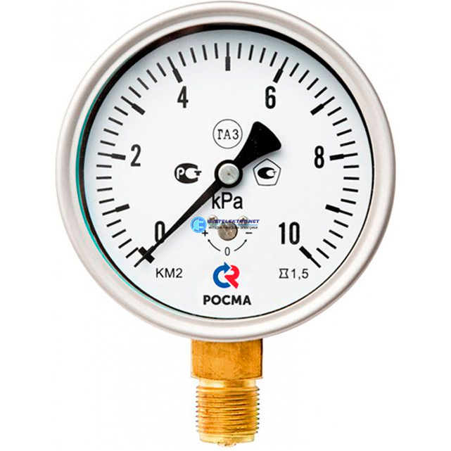 Манометр для измерения низких давлений газов радиальный КМ-12Р 0-10kPa М12х1.5 63мм кл.1.5, код 00000028117, производитель РОСМА