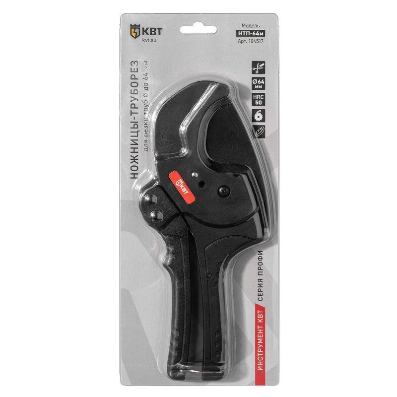 Ножницы-труборез НТП-64м серия ПРОФИ для резки ПВХ, полипропиленовых и металлопластиковых труб до 64 мм, код 104517, производитель КВТ