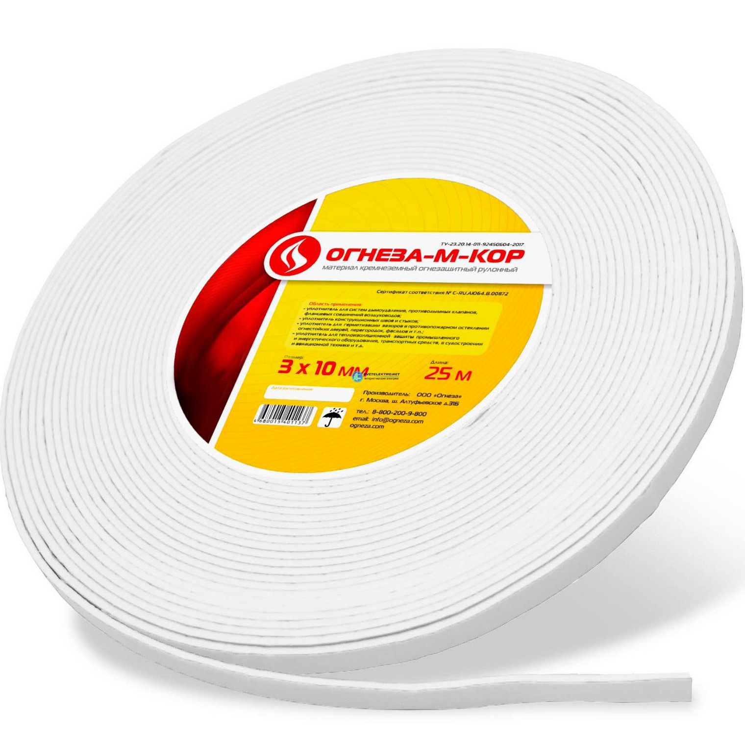 Негорючий уплотнитель ОГНЕЗА-М-КОР 3*10 мм, рулон 25 пог.м. 106718 ОГНЕЗА