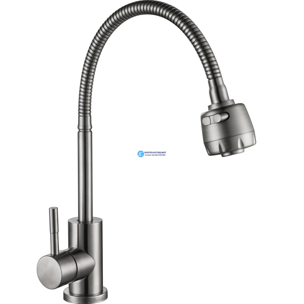 Смеситель для кухни шаровый с гибким изливом 2-х режимный аэратор, нержавеющая сталь 11360-FOX GOLDEN FOX