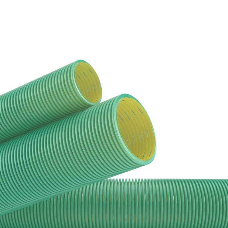 Труба гофрированная двустенная ПНД гибкая дренажная d90мм без фильтра SN6 перфорация 360град. зеленая (уп.50м), код 140990, производитель DKC