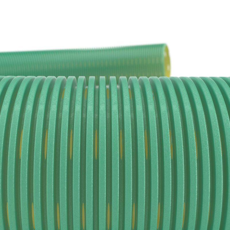 Труба гофрированная двустенная ПНД гибкая дренажная d90мм без фильтра SN6 перфорация 360град. зеленая (уп.50м) 140990 DKC